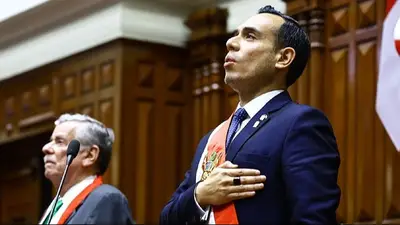 Tras la destitución de la presidenta del Perú Dina Boluarte, José Jerí asumió la presidencia, el Congreso peruano le puso la banda presidencial para que asuma el cargo como jefe de Estado después de Boluarte.