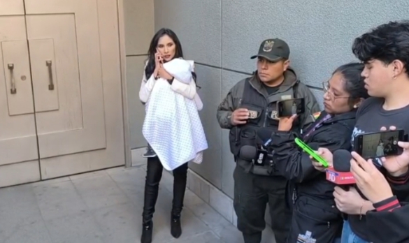 Lafuente llegó con su hijo en brazos y esperara realizar la notificación al piso 24 de la Casa Grande del Pueblo, sin embargo, Arce no dio la autorización para que el oficial de diligencia realice la acción.